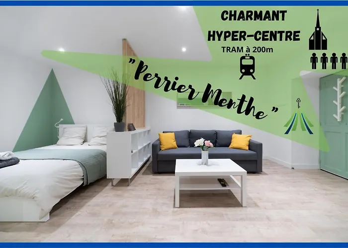 ※Perrier Menthe※ Hyper-Centre Et Tranquillite Lägenhet lägenhet är belägen i Clermont-Ferrands Centre Ancien distrikt, ca 10 km från Clermont-Ferrand Auvergne flygplatsen. Alla redskap som behövs för matlagning, inklusive kaffe/tebryggare, kylskåp och köksredskap, finns i ett komplett kök.